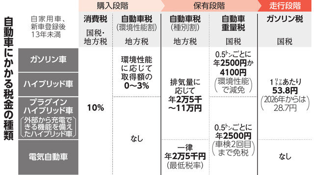 ■購入・保有・走行に各種の税金。業界は簡素化を要望 Q 乗用車にはどんな税金がかかるのか。 A (1)買うとき(2)持っているとき(3)走るとき――の三つに分けられる。 (...