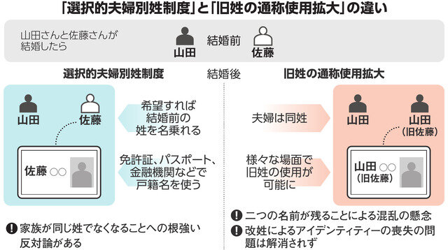 ■旧姓を使える場面は増えるが、夫婦は同姓のまま Q 結婚後の姓(せい)をめぐって、「選択的(せんたくてき)夫婦別姓」と「旧姓の通称(つうしょう)使用の拡大」が話題になっている。...