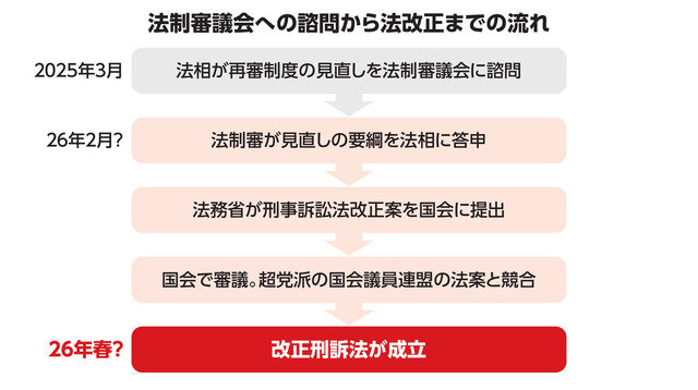 ■法相の諮問機関(しもんきかん)。証拠(しょうこ)開示規定などを専門家が議論 Q 再審(さいしん)の制度とは。 A 刑事裁判(けいじさいばん)で有罪が確定した人が「その判断は...
