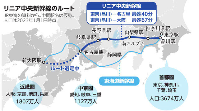 ■36年以降にずれこむ見通し。当初は27年予定だった Q どこを走るのか。 A 東京からだと品川を出発し、神奈川、山梨、静岡、長野、岐阜各県を通過し、名古屋までの286キロを...