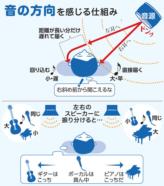 長野県・柳沢風希(やなぎさわふうき)さん(小4)からの質問 ■音の広がり、脳の仕組みで再現 ののちゃん 歌を聴いてて気付いたんだけど、右と左のスピーカーから出る音って違うよね...