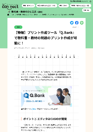 新しいプリント作成ツール『Q.Bank』が,株式会社Libryより4月10日にプレスリリースされました。改訂版教科書の使用開始にあわせた2026(令和8)年3月より提供開始され,東京書籍の教科書や教材の問題を用いたプリント作成も可能になります。…