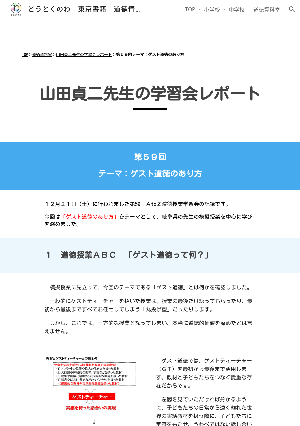 東京書籍の道徳情報サイト「どうとくのわ」の記事です。「山田貞二先生の学習会レポート」では、道徳科の授業を中心にして学び合う学習会「AtoZ道徳授業学習会」の様子をお伝えしています。今回のテーマは「ゲスト道徳のあり方」です。