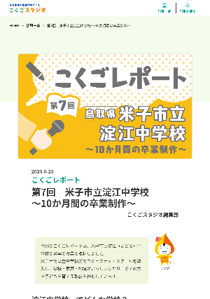 東京書籍の国語情報サイト「こくごスタジオ」の記事です。全国の学校での取り組みを紹介する「こくごレポート」の第7回目となります。今回は米子市立淀江中学校に伺いました。3年生の卒業制作として、書写の共同作品を制作する授業を、10か月にわたり取材しました。