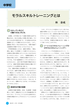 [中学校] モラルスキルトレーニングとは 林泰成(上越教育大学助教授) 小学校・中学校道徳-教室の窓Vol.2 東京書籍2004年12月発行 [もくじ] わかっているけど行動できない子ども 具体的な行動の指導 ソーシャルスキルトレーニングからモラルスキルトレーニングへ 授業プログラムの構造 効果としてねらっていること