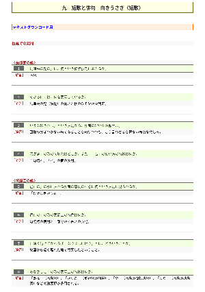 [精選国語II 発問例集]9 短歌と俳句 白きうさぎ〈短歌〉〈長塚節の歌〉〈釈迢空の歌〉〈会津八一の歌〉〈斎藤史の歌〉〈宮柊二の歌〉〈岡井隆の歌〉〈佐佐木幸綱の歌〉〈河野裕子の歌〉 「精選国語II (590)」準拠、発問例集授業の中での発問の例として、またテスト問題作成されるときの問題の例としてご利用ください。「テキストダウンロード用」で、テキストデータだけを取り出すことができますので、教材作成のために、自由に加工編集してご活用ください。