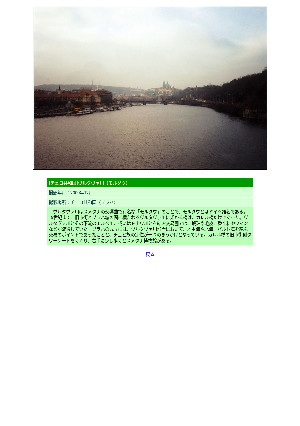 [チェコ共和国]ヴルタヴァ川(モルダウ)、撮影年月:2000年12月、撮影者:K.O、撮影場所:チェコ共和国(プラハ)。ヴルタヴァ川はスメタナの交響曲で有名な「モルダウ」のことで、モルダウとはドイツ語名である。19世紀まで、旧市街とプラハ城の間に横たわるヴルタヴァ川に架かる橋は、カレル橋だけであった。ヴルタヴァ川とその下流のエルベ川、或いはドナウ川とを結ぶ交易圏では、琥珀や毛皮、香辛料やワインなどが流通していた。プラハの成立には、ヴルタヴァ川沿岸において、地中海や北海、バルト海を結ぶ交易のポイントであったことと、チェヒ族の定住が一つのきっかけとなっている。カレル橋の旧市街側タワーゲートをくぐり、右手に少し歩くとスメタナ博物館がある。