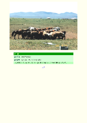 [モンゴル]馬、撮影年月:2000年8月、撮影場所:モンゴル ウランバートル郊外。馬が集まって、頭(かしら)を中心に集まり蠅(ハエ)や蚊を追い払っている。
