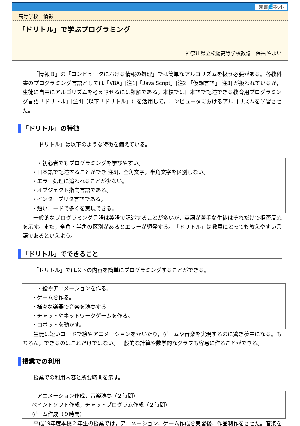 日本語で記述できる教育用プログラミング言語「ドリトル」について、その特徴とそれを活用した授業実戦および簡単なゲームプログラミングを紹介している。