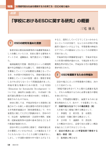 教室の窓「小学校・中学校 教育情報」Vol.37 2012年9月号より。国立教育政策研究所による「学校における持続可能な開発のための教育(ESD)に関する研究」では,ESD固有の価値を学習指導過程で構想した展開例を試行し,その実践を検証した結果を示している。ESDの視点に立った学習指導を学校で行う際に,大いに参考になるものと思われる。
