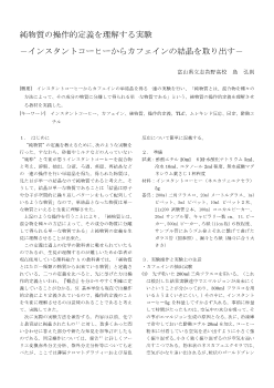 インスタントコーヒーからカフェインの単結晶を得る一連の実験を行い、「純物質とは、混合物を種々の方法によって、その成分の物質に分離して得られる単一な物質である」という、純物質の操作的定義を理解させる教材を実践した。本稿は、平成24年度全国理科教育大会〈北海道〉で発表したものをまとめたものである。