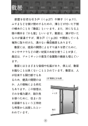 言葉の解説集(3)住生活編「LDKって何ですか?」2014年11月発行より。部屋を仕切る引き戸や障子,ふすまなどを開け閉めするための,溝などが付いた下側の横木のことを「敷居」といいます。また,対になる上側の横木を「かも居(鴨居)」といいます。