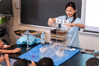 サントリーのオリジナル教材で、水循環や森が水を育むしくみを体験を通して主体的に学ぶことができる