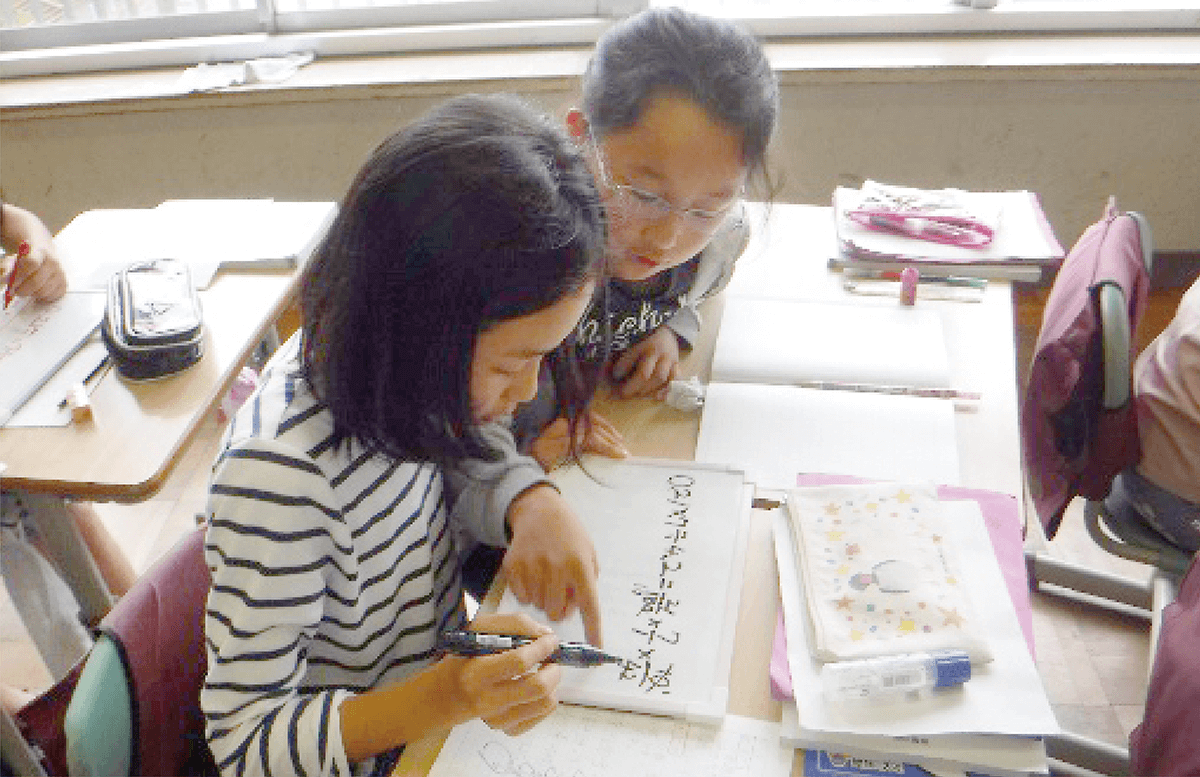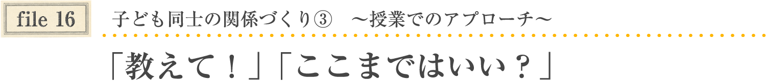「ここが分からないんだ,教えて!」と言える聞き手,「ここまではいい?」と反応に合わせて言葉かけができる教え手を育てることを大切にしています。そのために,「できた人,まだの人に教えて来て」と指示する前に,教え合うことの大切さや,教え合い方を,具体的に指導します。教え合いを通して,一緒に学ぶ楽しさや,相手への思いやり,分からないところを分からないままにせず,質問する勇気などが,子どもたちの間に広がっていきます。