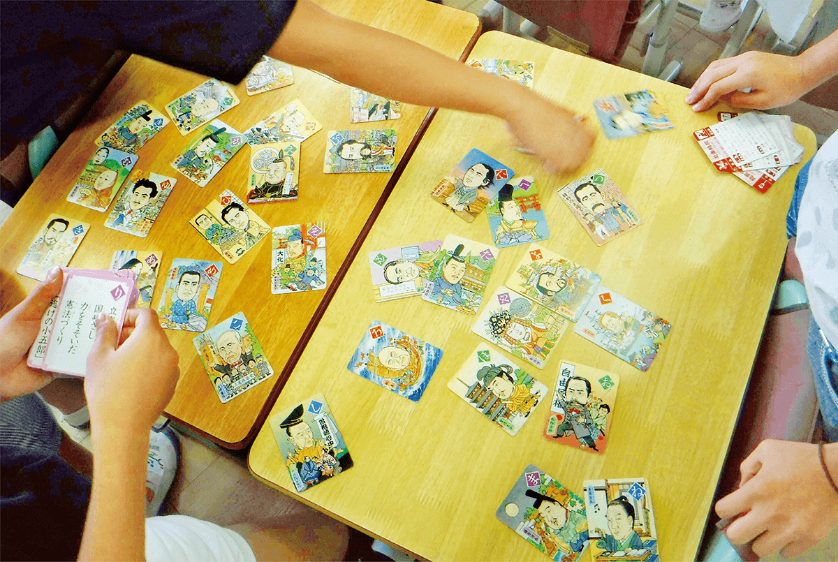 私の担任する学級では,1学期間で7回,係活動の集会が開かれました。その記念すべき第1回の企画として,「歴史上人物かるた大会」が実施されました。係のメンバーは,いわゆるおとなしめの子でした。普段目立つことの少ない子も,こうしてよりよいクラスづくりに主体的に参画する姿は,クラスの一体感を感じるほほえましい時間です。