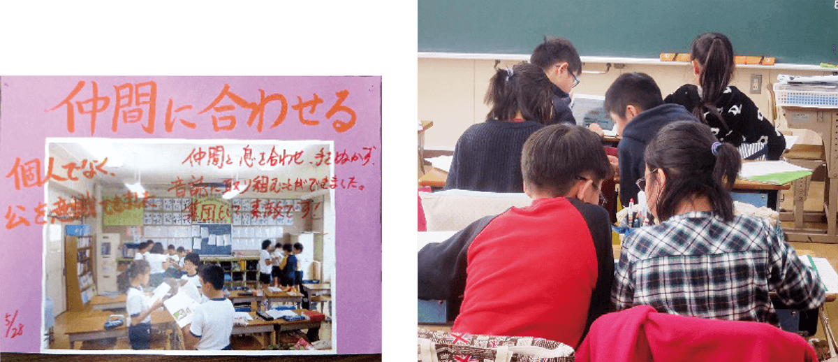 1学期,子ども同士の関係をつくるために大切にしてきたのが,子ども同士の距離感です。体の距離は心の距離と考え,コミュニケーションゲームや話し合い活動など,子ども同士が関わり合う活動を多様に取り入れながら,「寄り添うことは思いやり」「相手に合わせた行動は美しい」「相手意識は思いやり」といった価値ある姿を示し,共有してきました。2学期には,「だれとでも」といった多様な関わりを促す指導に重点を移していきます。