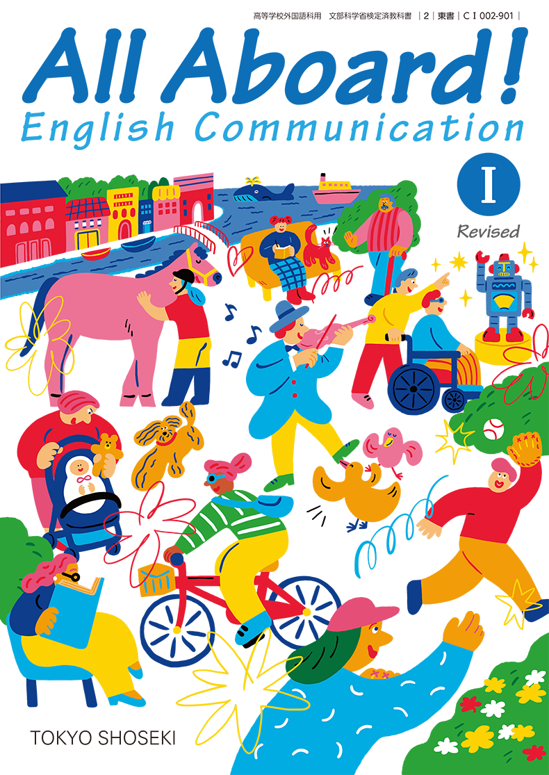 目まぐるしく変化する世界状況の中で、英語教育においては今、「地球市民を目指す学び」が求められています。その理由は、現在の世界において、より相互協力の必要性が高まり、平和的、かつ民主的で持続可能な社会の重要性が増しているからです。この地球市民教育の前提として、学習者が自分たちの地域の問題から世界の問題へと目を向け、その解決に向けて積極的な役割を担うことが求められています。身の回りの日常から、より広い世界へと探求する学び。英語の学びにおいても、このように教科書から「教室の向こう側の世界」へとつながる視点が必要となっています。新しいAll Aboard!もこの視点をもち、積極的に学習者を応援したいと願っています。