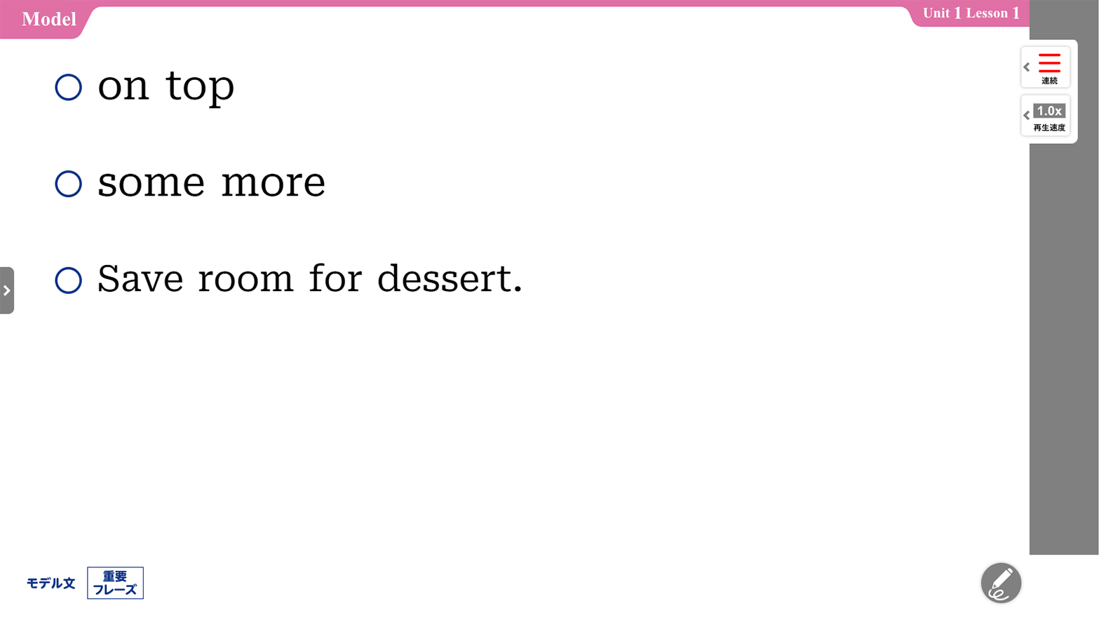 速度やパターンを変更できる再生機能や、保存可能の書き込みツール、ロールプレイ機能などを拡充し、個別最適な学びを提供します。