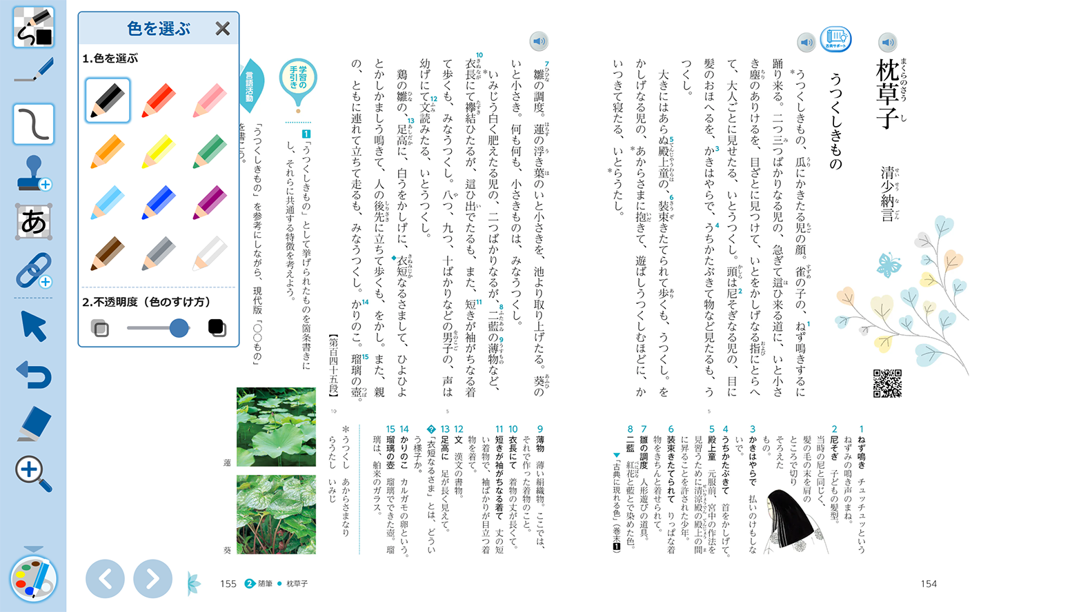 電子黒板やプロジェクタなどを使用して、教科書紙面や関連するコンテンツを提示することができる指導用教材です。多様なコンテンツを収録しており、教科書紙面上のアイコンをクリックするだけでご利用いただけます。