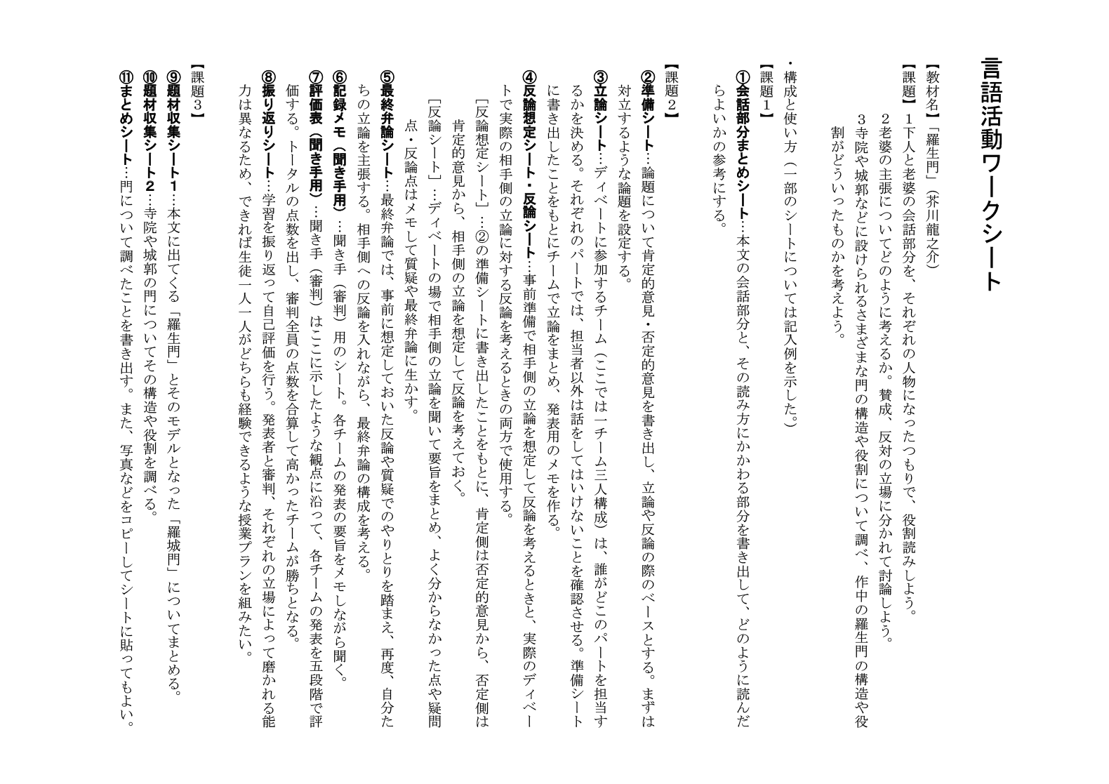・言語活動の授業で活用できるワークシートのデータです。※一部教材のみ収録。