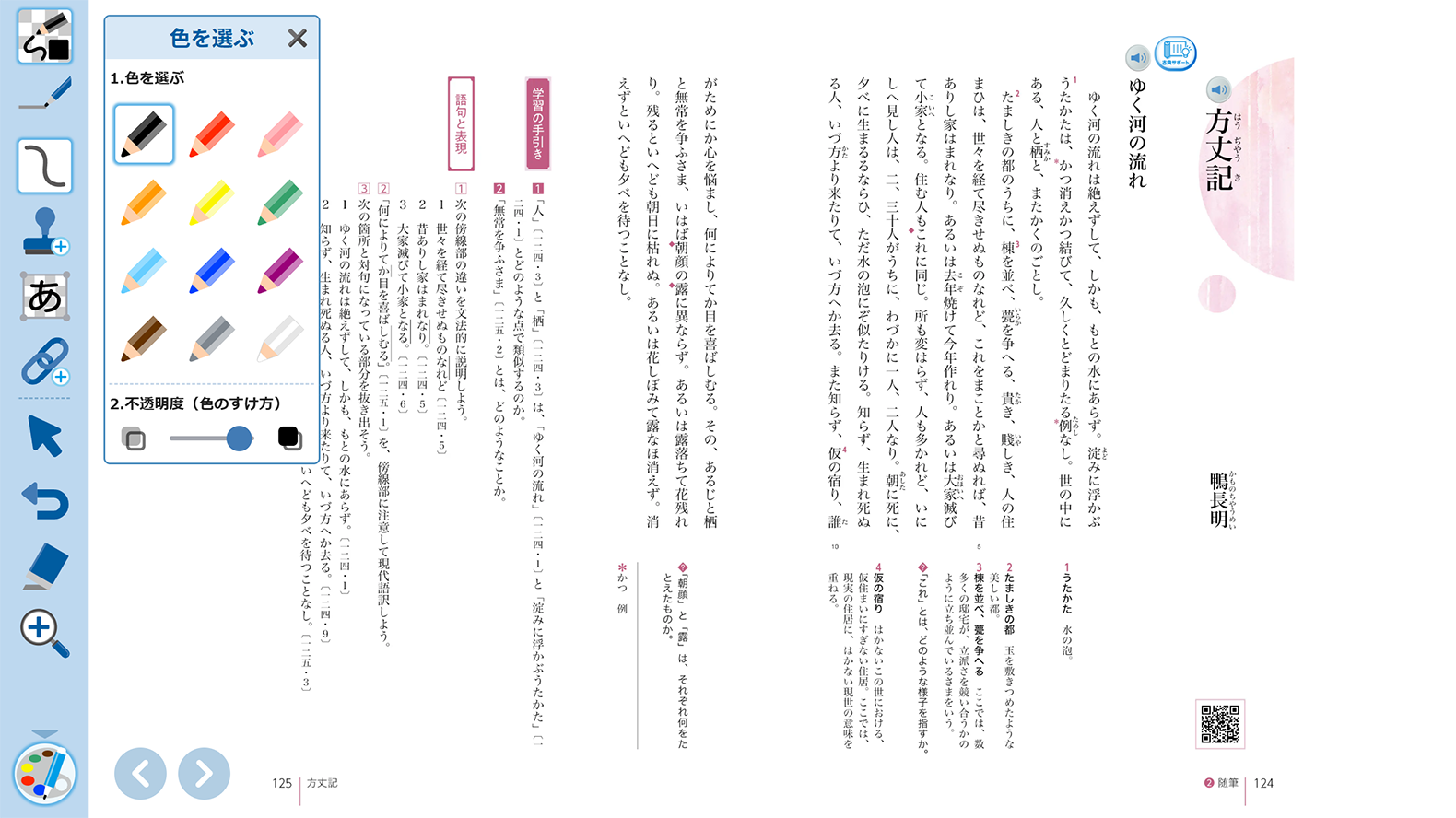 電子黒板やプロジェクタなどを使用して、教科書紙面や関連するコンテンツを提示することができる指導用教材です。多様なコンテンツを収録しており、教科書紙面上のアイコンをクリックするだけでご利用いただけます。