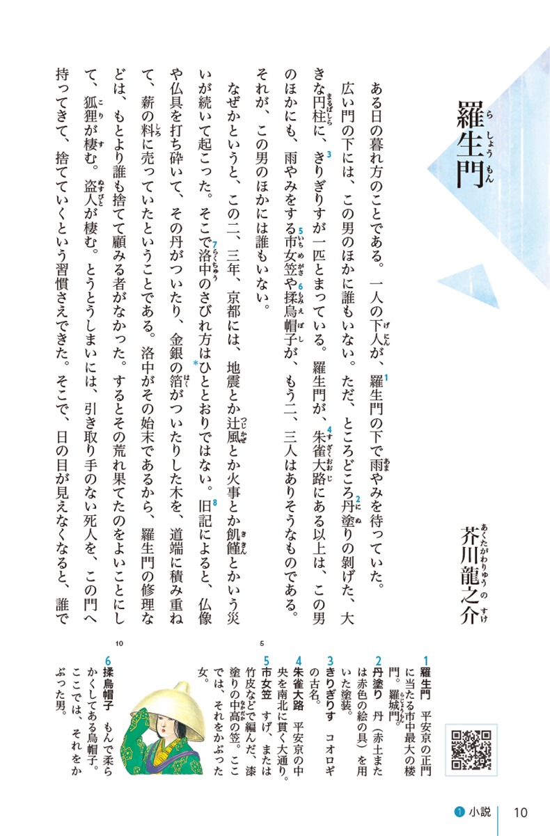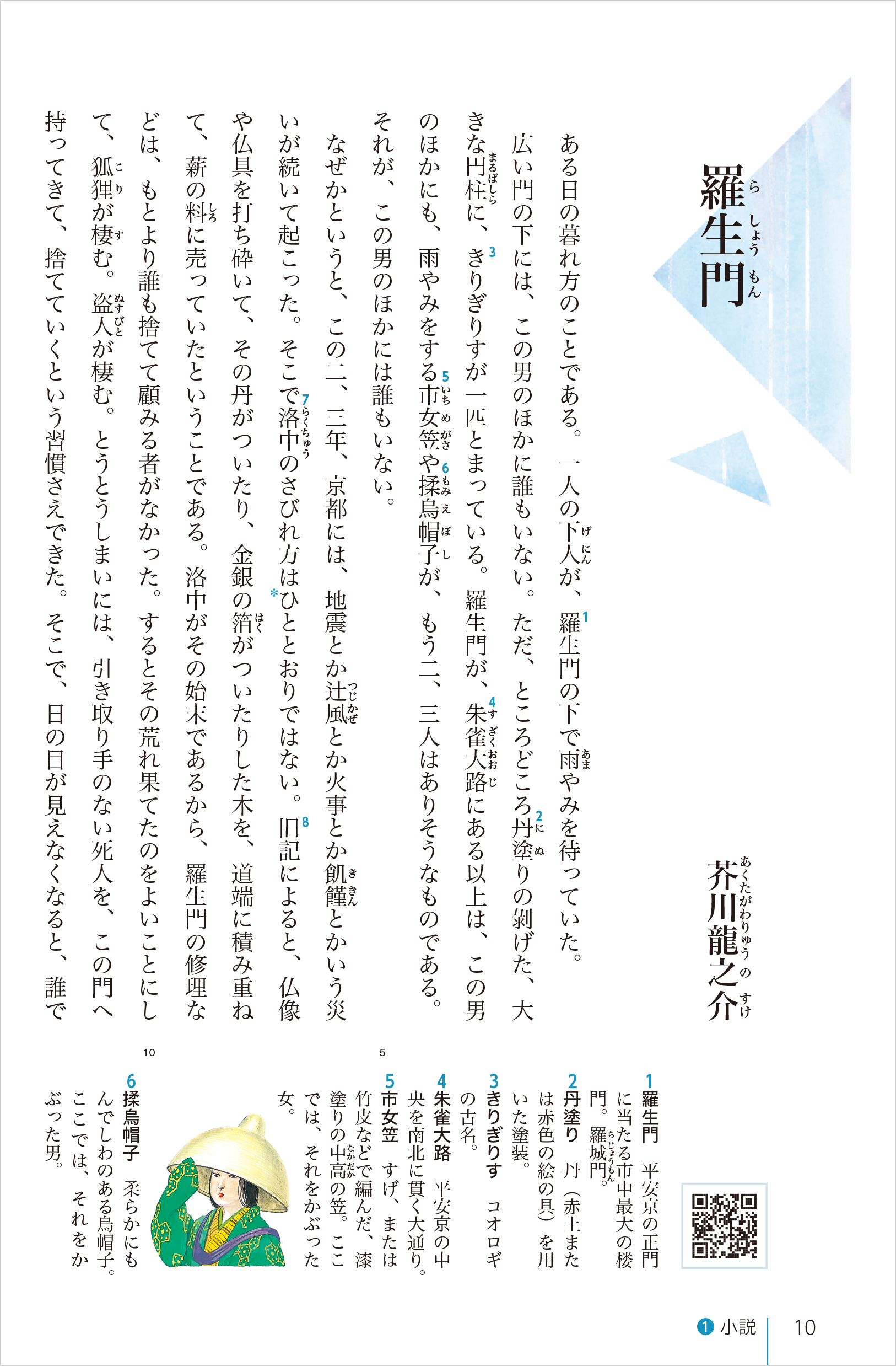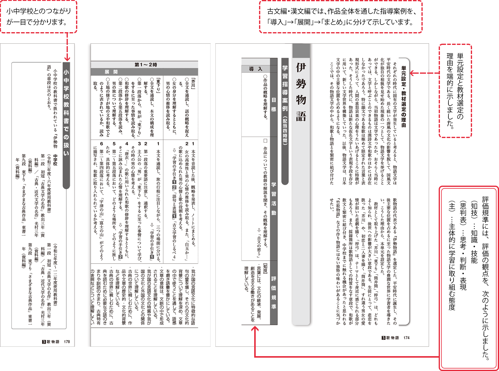 ・「羅生門」「城の崎にて」「小景異情」「徒然草」「平家物語」「奥の細道」「絶句と律詩」などの教材を収録しています。