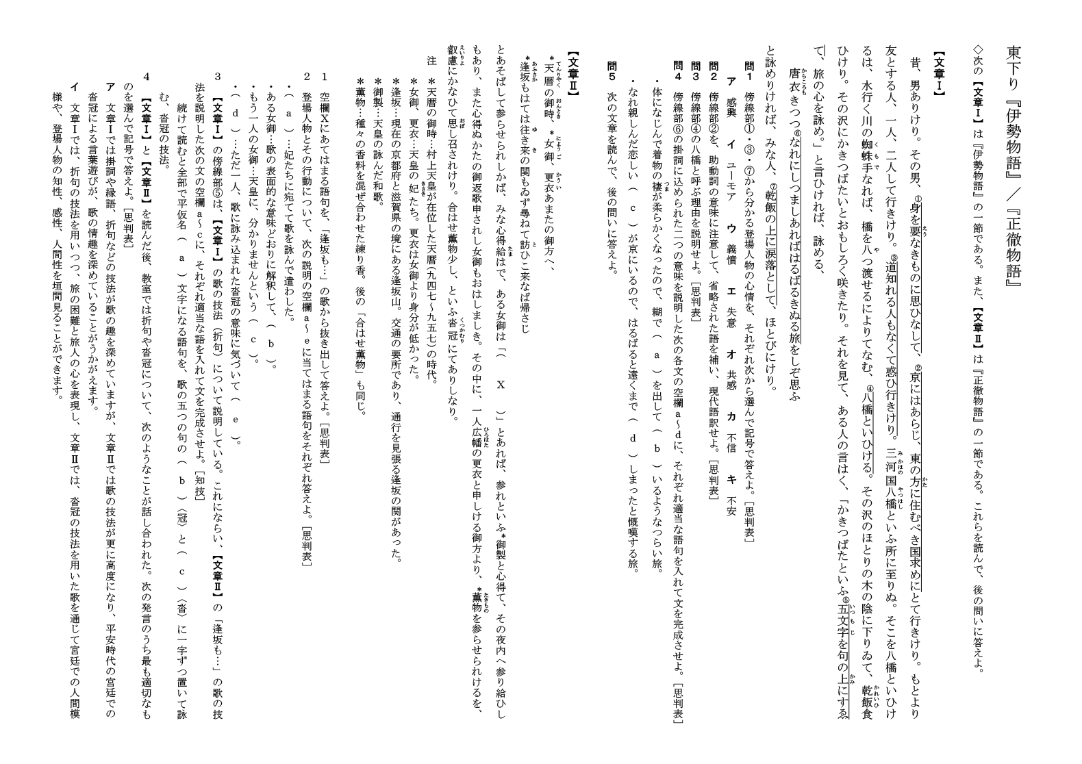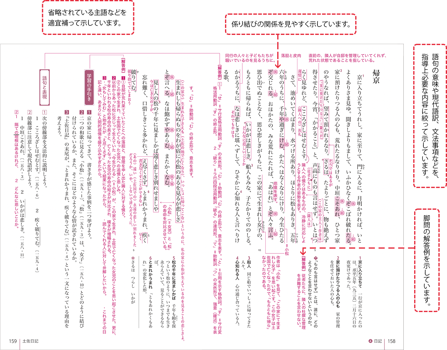 - 〈作品の解説〉書名/成立/作者・編者/内容/文学史的意義/研究/教科書本文/解釈と鑑賞/参考文献