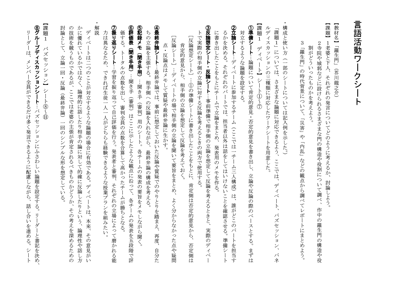 ・言語活動の授業で活用できるワークシートのデータです。※一部教材のみ収録。