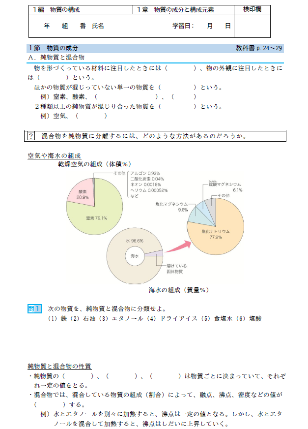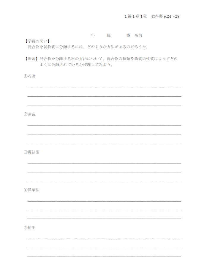 教科書に掲載している実験(実験、ちょこラボ、おうちラボ)のワークシートです。各学校の方法に合わせてカスタマイズしてお使いいただけます。