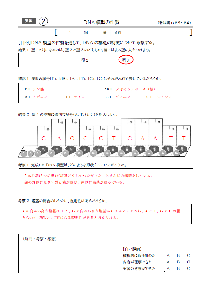 教科書に掲載している実習のワークシートです。各学校の方法に合わせてカスタマイズしてお使いいただけます。穴埋め形式の生徒用と記入例を赤字で示した教師用を収録しています。