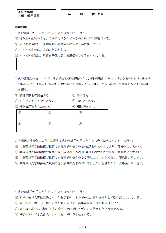 『改訂 生物』(生物002-901)、『スタンダード生物』(生物002-902)、『ニューサポート スタンダード生物』、『改訂 ニューアチーブ生物』の問題文、解答・解説のテキストデータを収録しています。