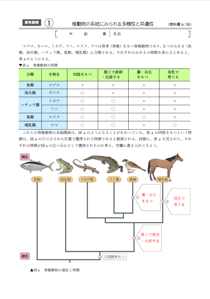 教科書の「資料読解」に準拠したワークシートです。記入スペースを設けた生徒用と記入例を赤字で示した教師用を収録しています。