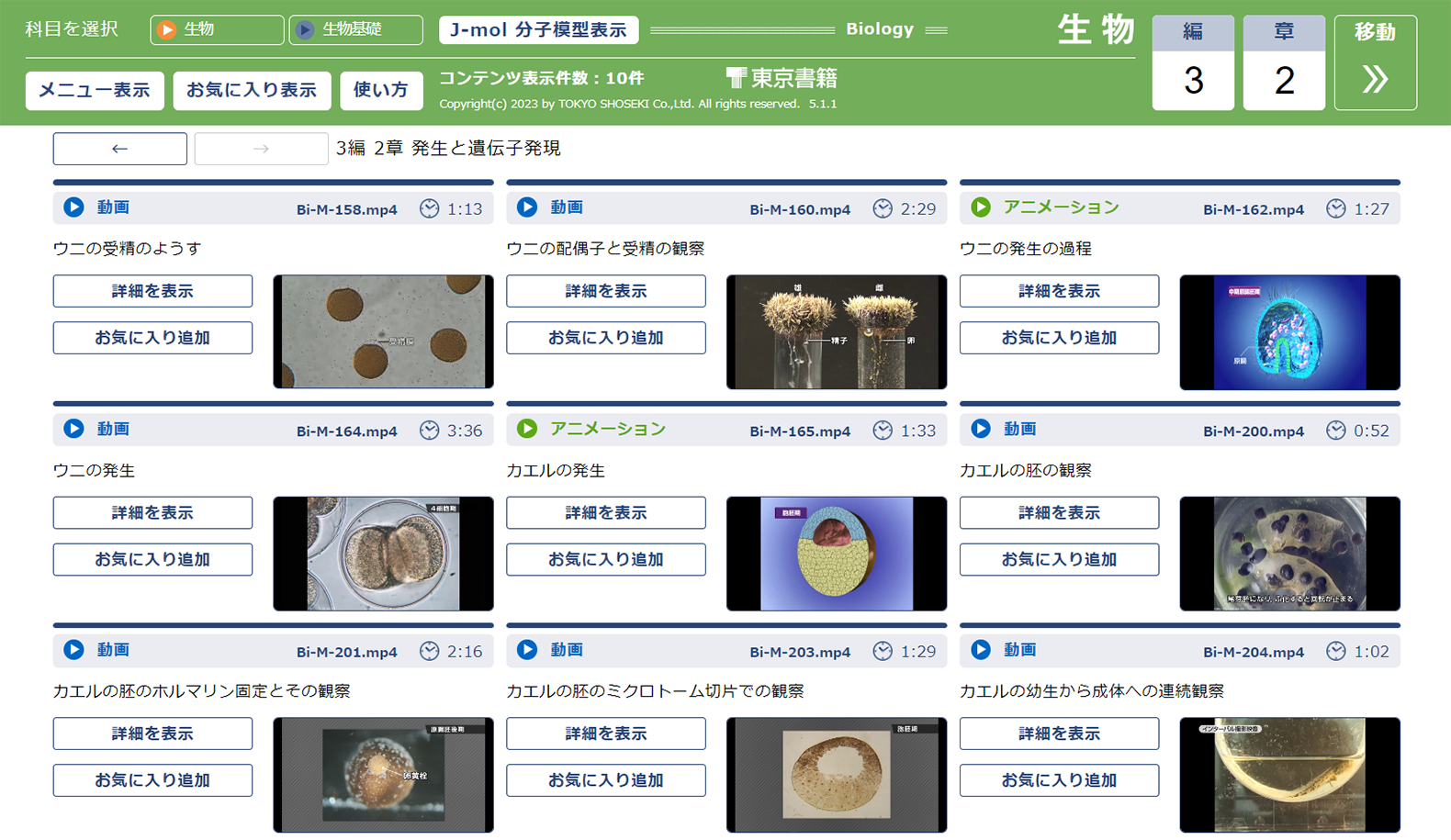 教科書の内容に関する観察実験動画や、教科書の重要な図のわかりやすいアニメーションなどを収録しています。