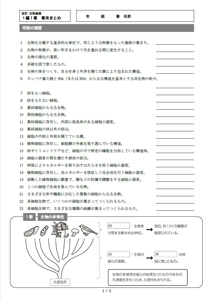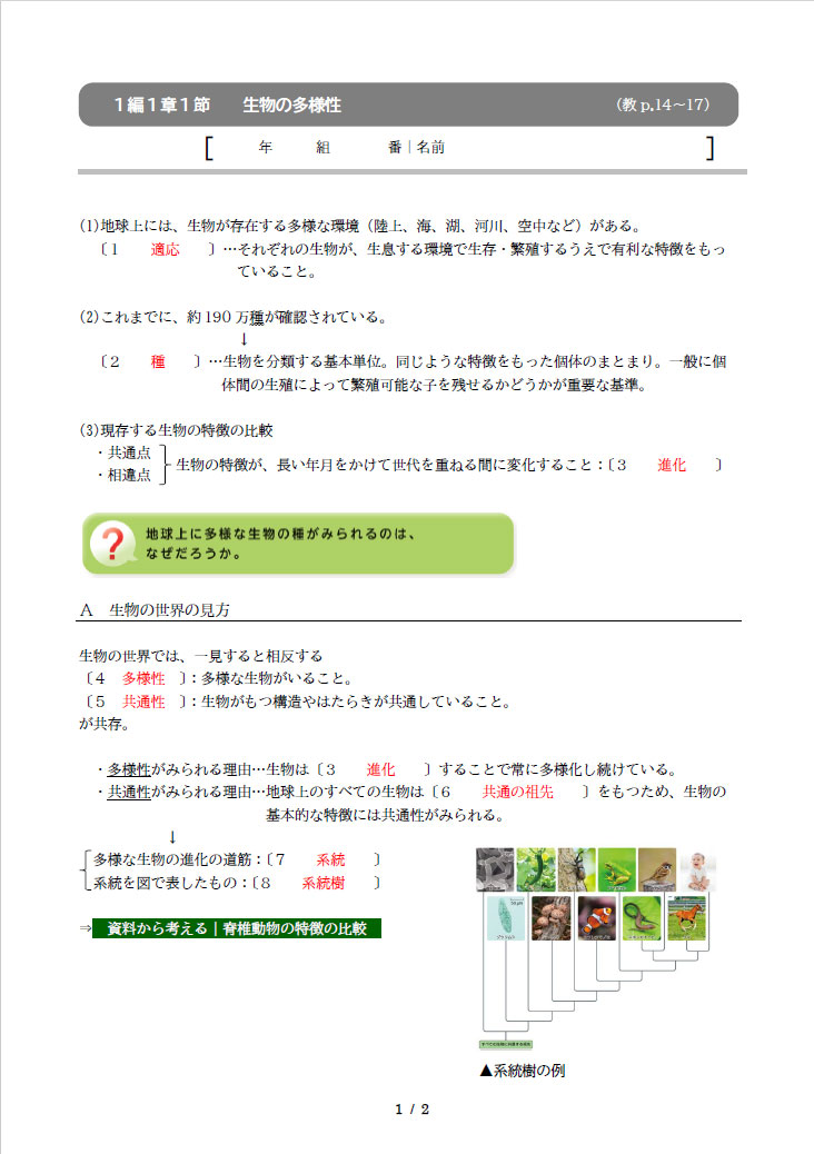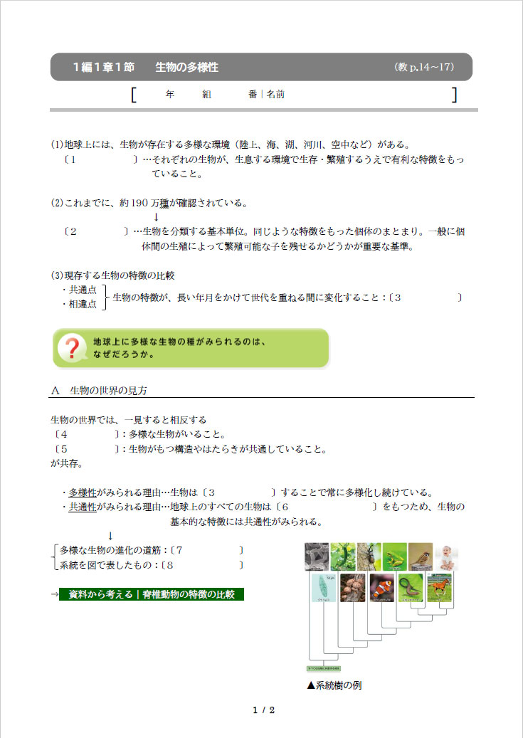 | ニューサポート スタンダード生物 紙面サンプル |