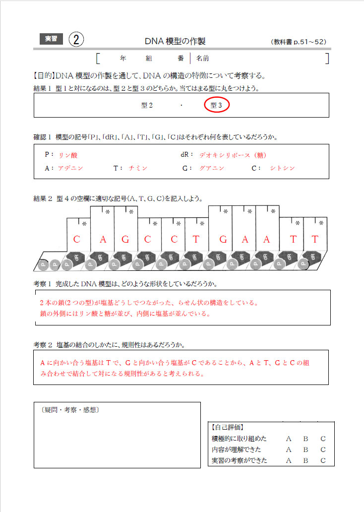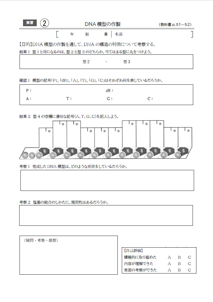 教科書に掲載している実習のワークシートです。各学校の方法に合わせてカスタマイズしてお使いいただけます。穴埋め形式の生徒用と記入例を赤字で示した教師用を収録しています。
