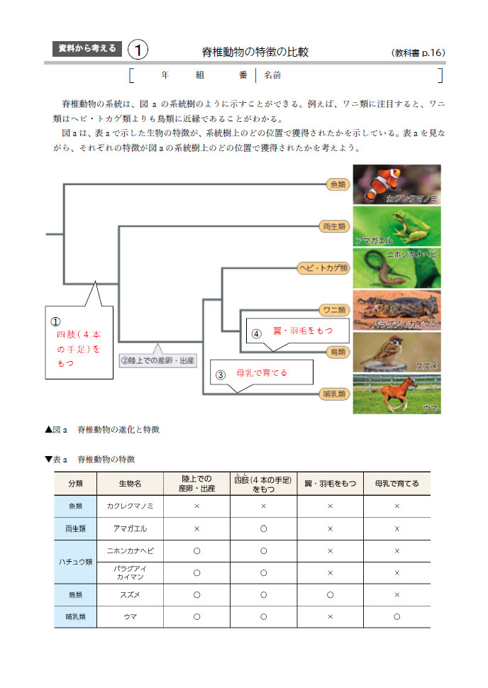 教科書の「資料から考える」に準拠したワークシートです。記入スペースを設けた生徒用と記入例を赤字で示した教師用を収録しています。