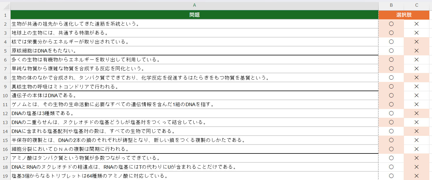 教科書の文章から出題される、〇✕で答える簡単な問題です。