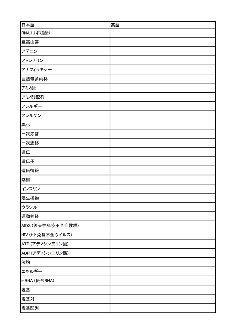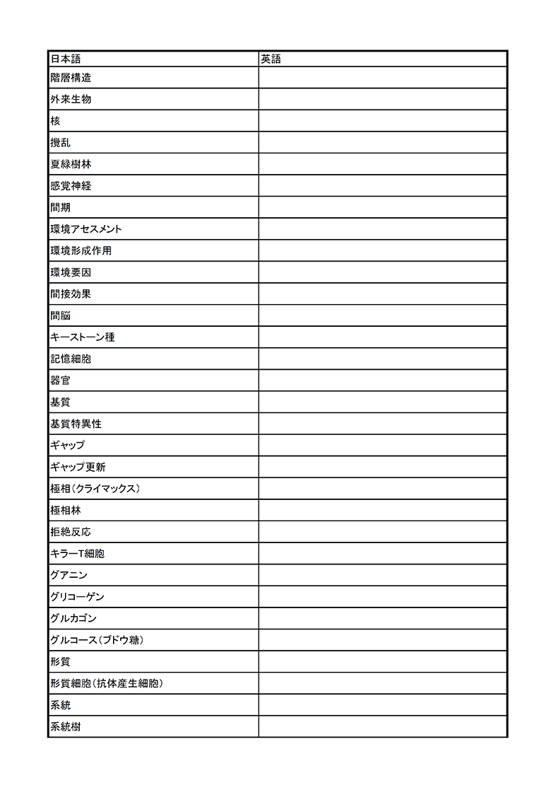 教科書の「重要用語」の英訳を確認するプリントと「重要用語」の簡単な定義を確認するためのプリントです。