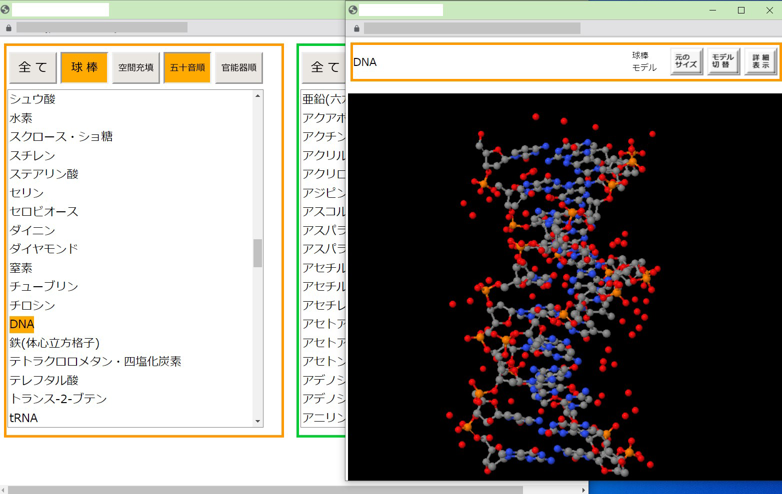 複雑な分子模型を立体表示できます。