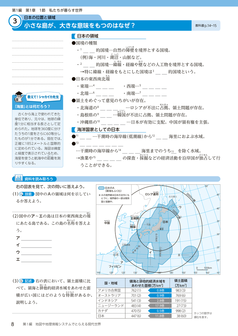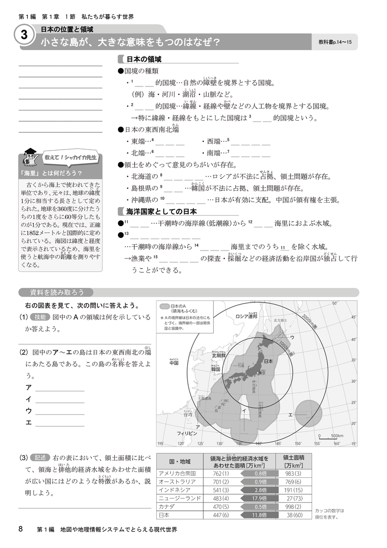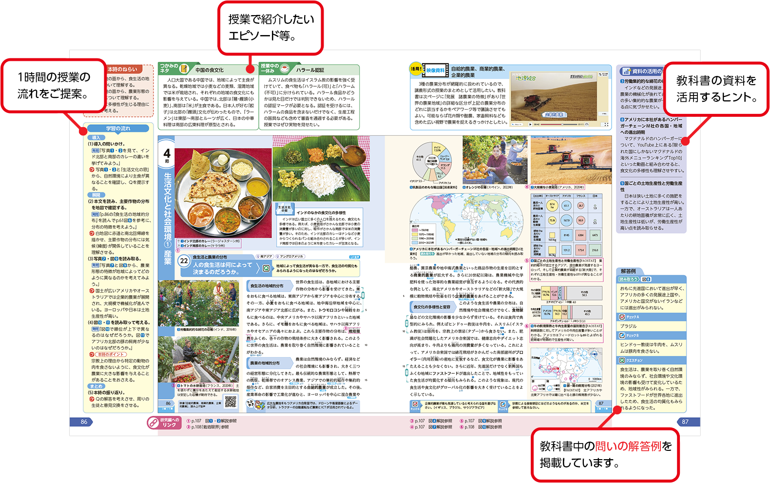 『地理総合』では、教科書目次ページからコンテンツ一覧へのリンクのほか、該当箇所からも直接関連するコンテンツをご覧いただけます。