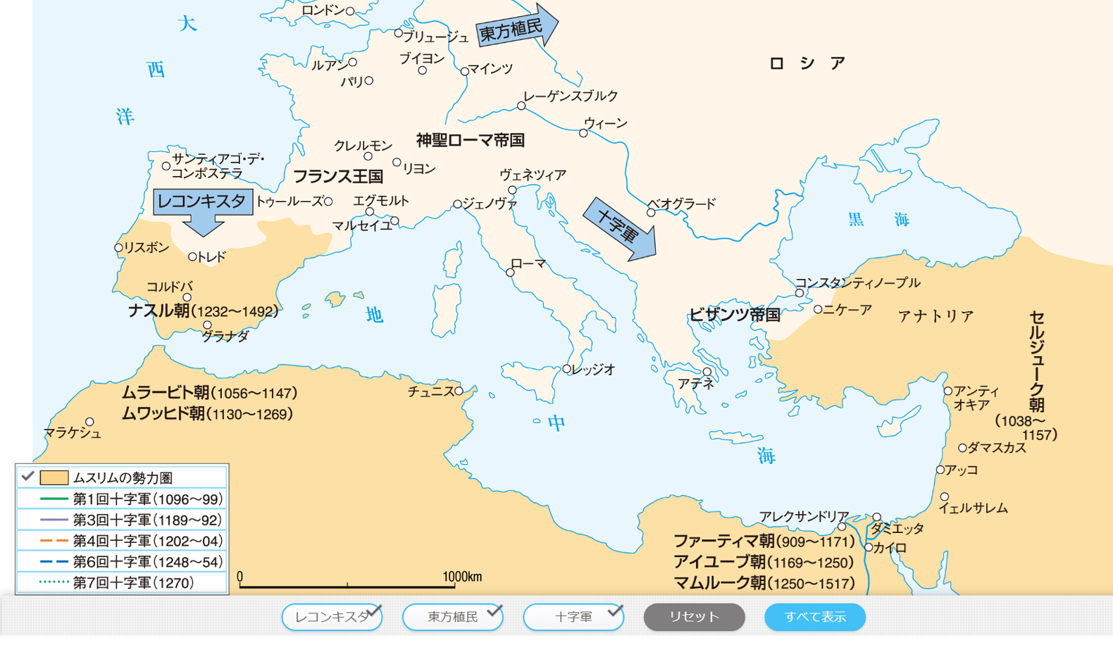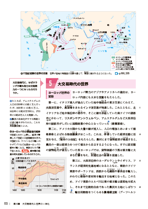 『世界史探究』では、教科書目次ページからコンテンツ一覧へのリンクのほか、該当箇所からも直接関連するコンテンツをご覧いただけます。