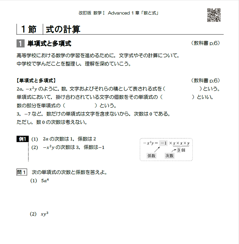 • 教科書全章全ページの本文や例・例題、問をすべて収載しています。