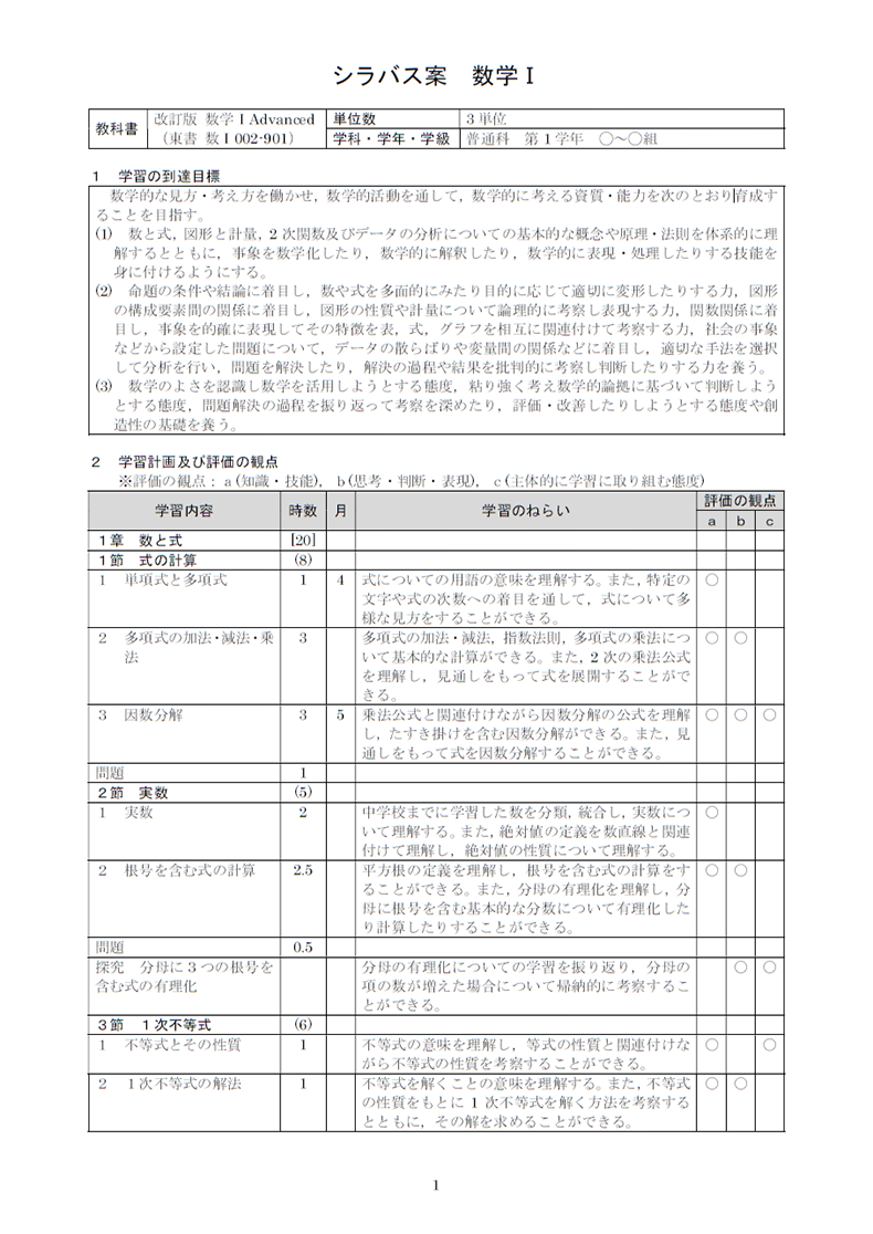 • シラバス作成時の資料として、学校の実態に合わせて加工・編集してご利用ください。