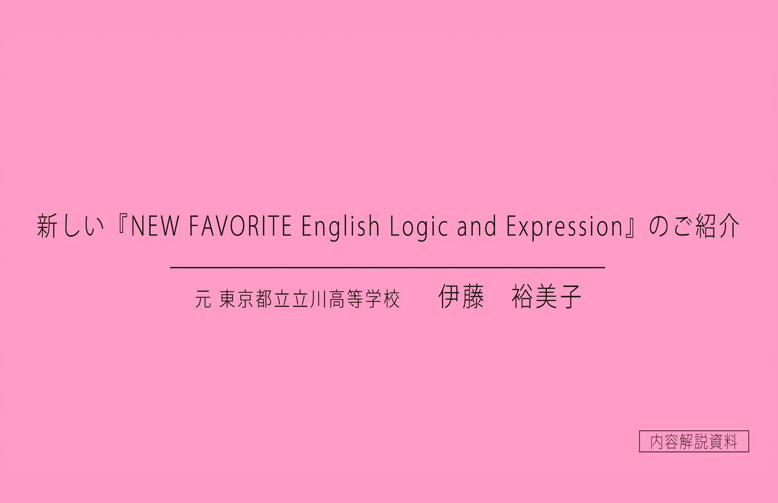 | 46456-2 | 学習者用デジタルワークブック 「NEW FAVORITE English Logic and Expression Ⅰ WORKBOOK」【書籍購入済】 |