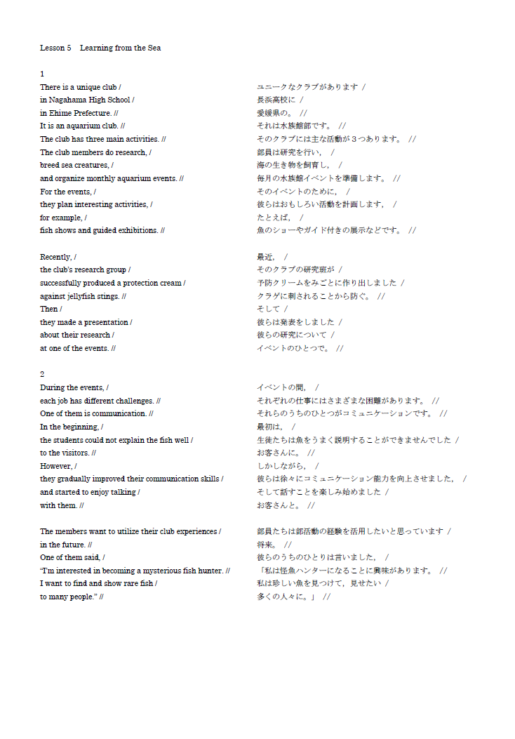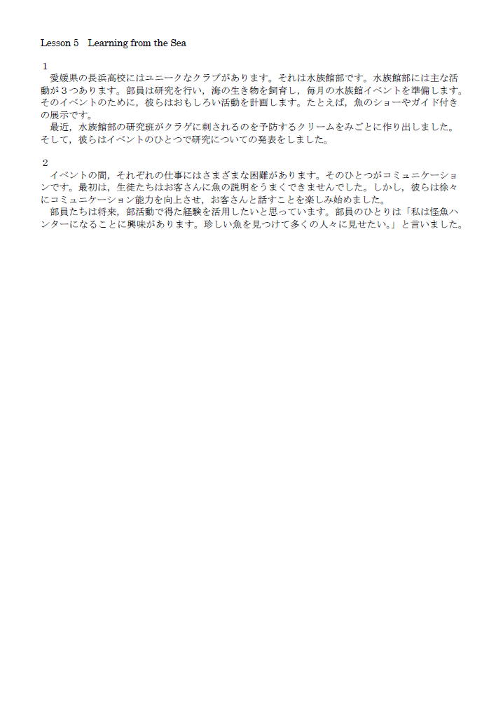目まぐるしく変化する世界状況の中で、英語教育においては今、「地球市民を目指す学び」が求められています。その理由は、現在の世界において、より相互協力の必要性が高まり、平和的、かつ民主的で持続可能な社会の重要性が増しているからです。この地球市民教育の前提として、学習者が自分たちの地域の問題から世界の問題へと目を向け、その解決に向けて積極的な役割を担うことが求められています。身の回りの日常から、より広い世界へと探求する学び。英語の学びにおいても、このように教科書から「教室の向こう側の世界」へとつながる視点が必要となっています。新しいAll Aboard!もこの視点をもち、積極的に学習者を応援したいと願っています。