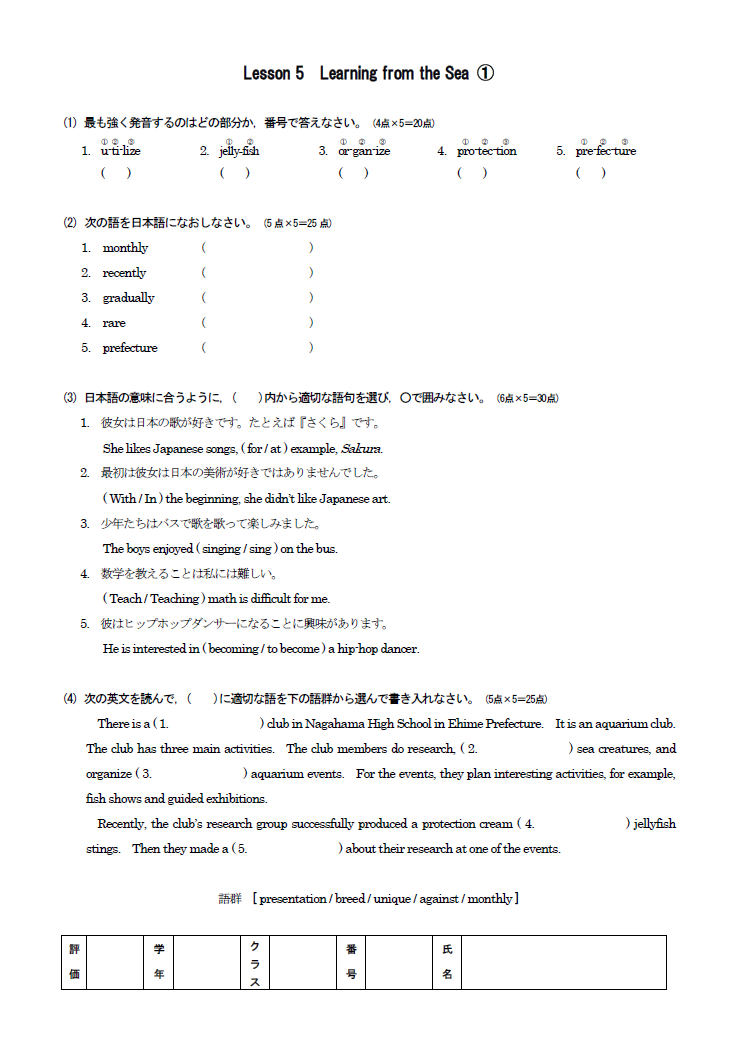 Activityルーブリック例ダウンロード