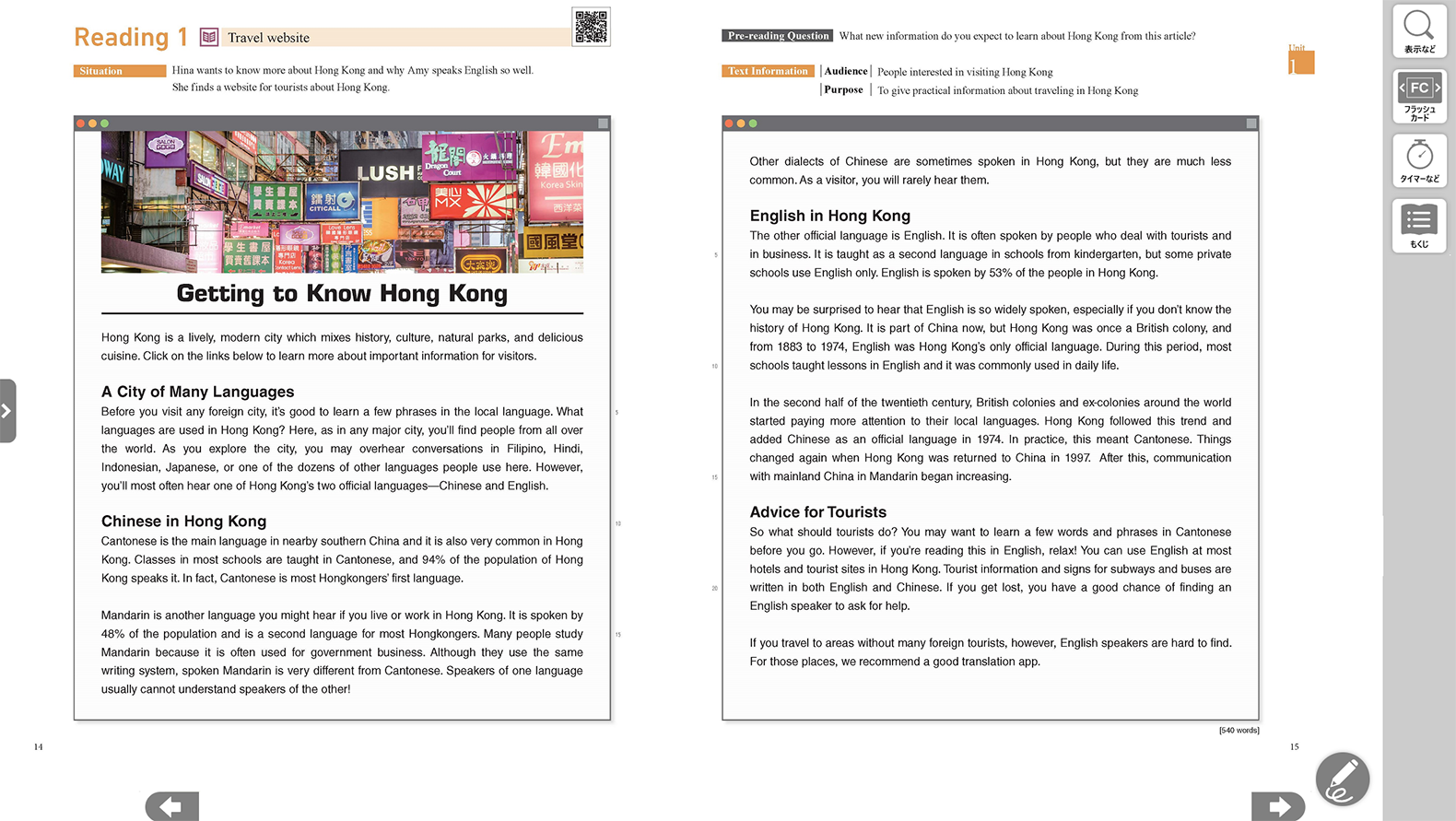 「ENRICH LEARNING」では、教科書表紙裏からコンテンツ一覧へのリンクのほか、該当箇所からも直接関連するコンテンツをご覧いただけます。