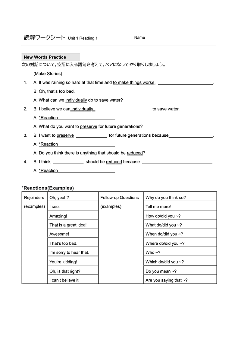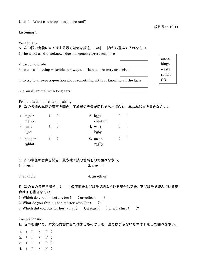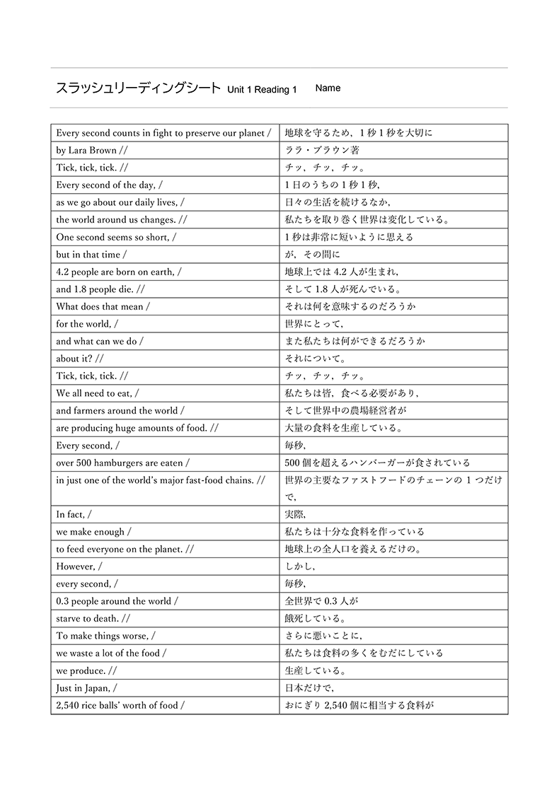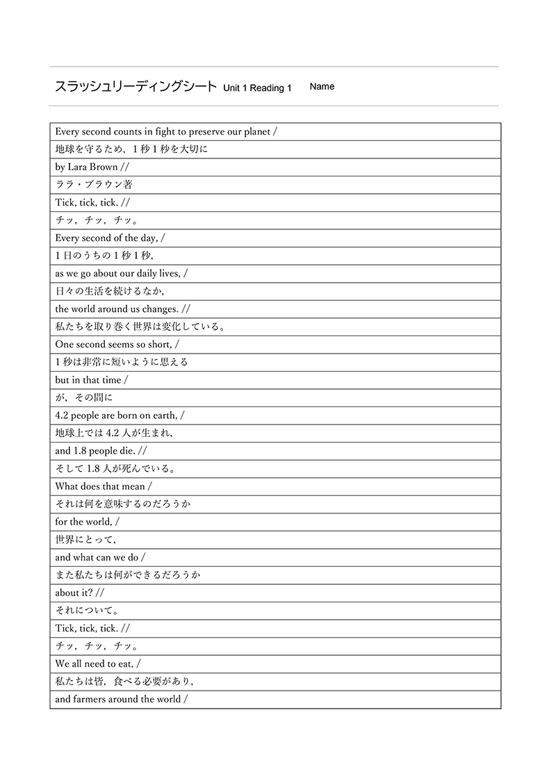 今回、ENRICH LEARNING English Communication I Revisedの作成にあたり、CLILとFocus on Formの考え方を大切にしました。CLIL(内容言語統合型学習)は、言葉だけでなく、その内容も同様に重視し、言語と内容を統合的に学ぶアプローチです。一方、Focus on Formは、言葉を文脈や場面の中で教える指導法です。ENRICH LEARNING English Communication I Revisedでは、各Unitのテーマを学びながら、生徒が自然に英語の語彙や文法を習得できるよう設計されています。言葉を単独で学ぶのではなく、内容と結びつけて学ぶことで、知識が深まり、学んだ言葉を実際の場面で活用しやすくなります。教材デザインの統合が、生徒の「統合的な学び」を促すことを期待しています。