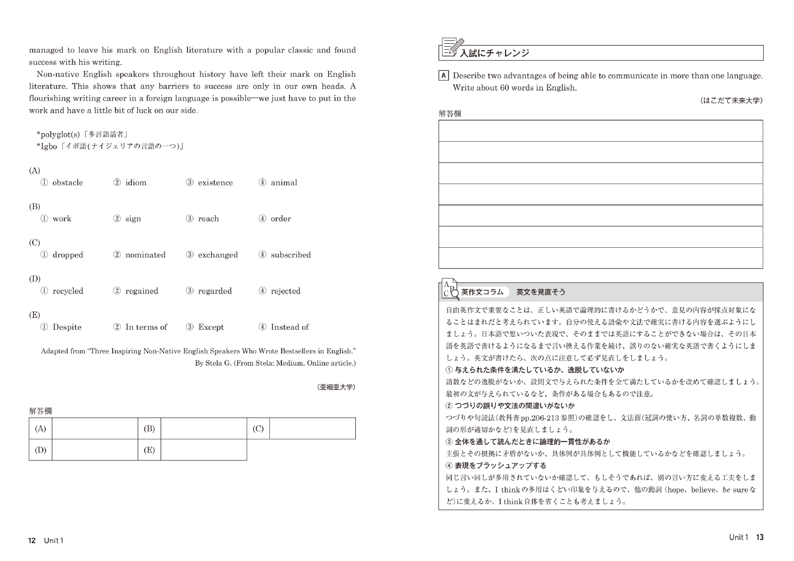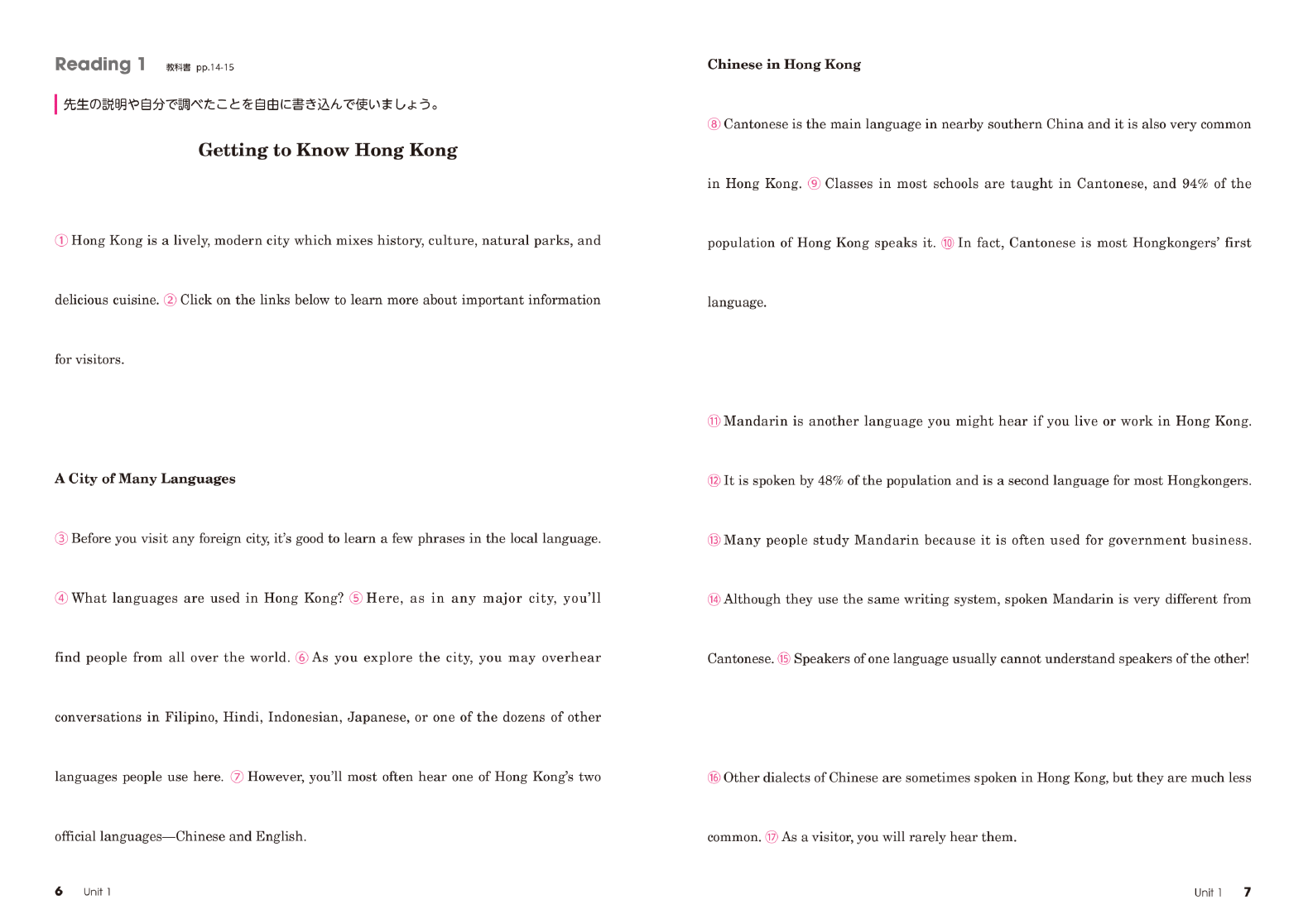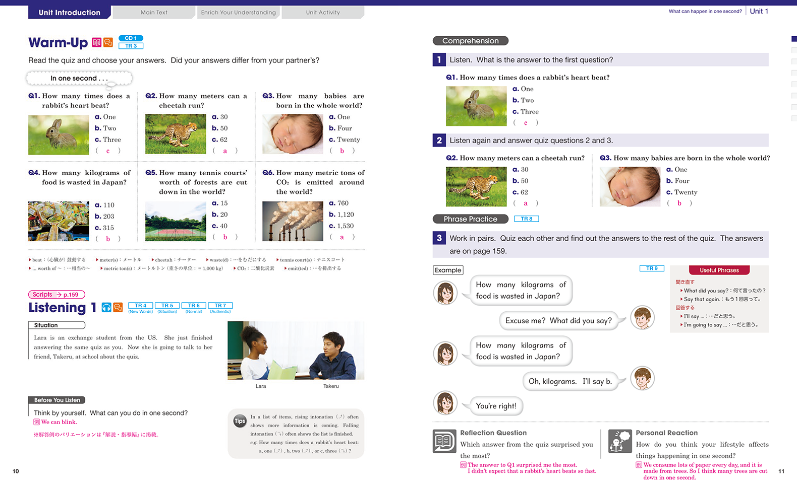 今回、ENRICH LEARNING English Communication I Revisedの作成にあたり、CLILとFocus on Formの考え方を大切にしました。CLIL(内容言語統合型学習)は、言葉だけでなく、その内容も同様に重視し、言語と内容を統合的に学ぶアプローチです。一方、Focus on Formは、言葉を文脈や場面の中で教える指導法です。ENRICH LEARNING English Communication I Revisedでは、各Unitのテーマを学びながら、生徒が自然に英語の語彙や文法を習得できるよう設計されています。言葉を単独で学ぶのではなく、内容と結びつけて学ぶことで、知識が深まり、学んだ言葉を実際の場面で活用しやすくなります。教材デザインの統合が、生徒の「統合的な学び」を促すことを期待しています。
