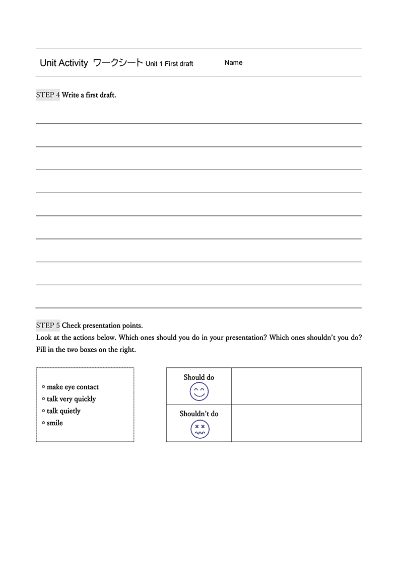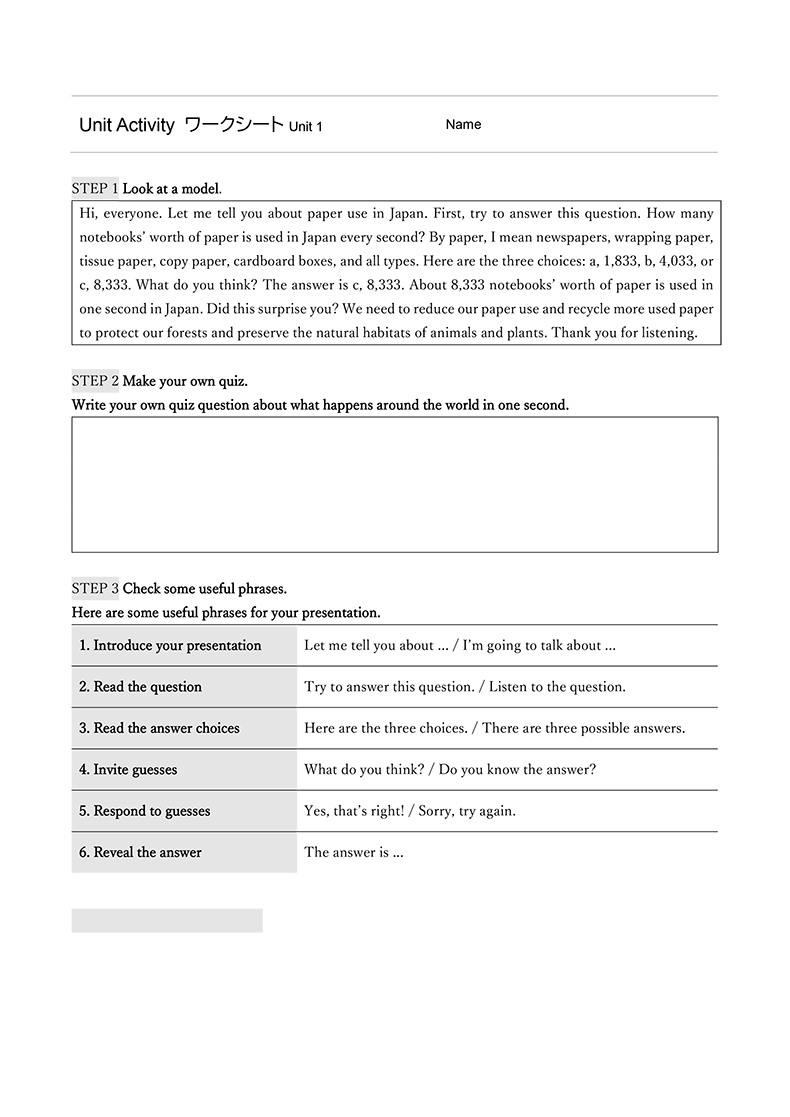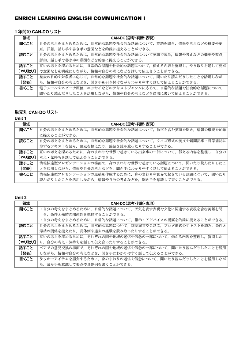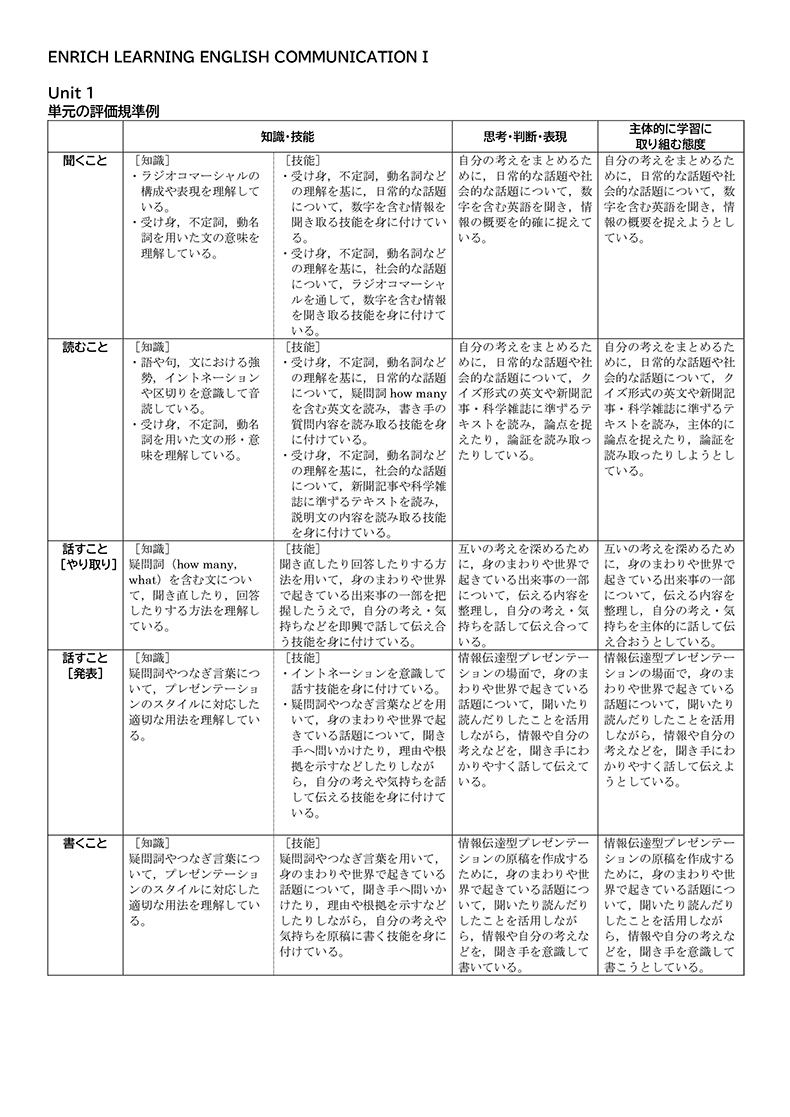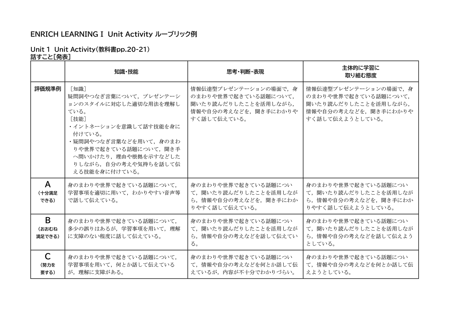 Unit Activityルーブリック例ダウンロード